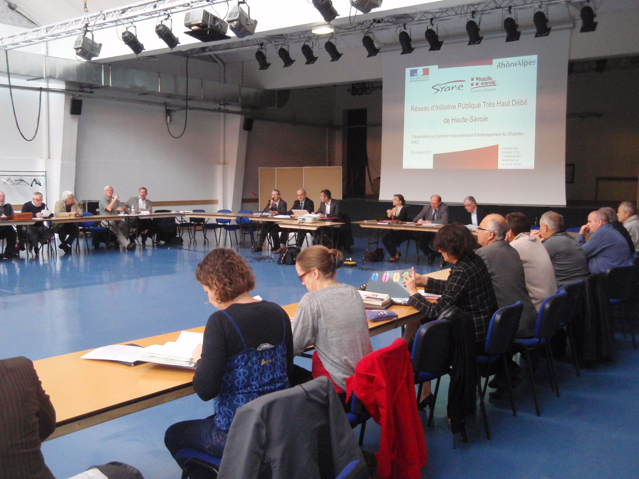 A l’invitation du Syndicat Intercommunal d’Aménagement du Chablais, le SYANE est venu présenter, ce lundi 8 octobre 2012, l’avancement du projet de réalisation du réseau d’initiative publique très haut débit de la Haute-Savoie. Porté par le SYANE en partenariat étroit avec le Conseil Général de la Haute-Savoie, ce projet bénéficie du soutien financier du Département, de la Région Rhône-Alpes, de l’Etat et des intercommunalités haut-savoyardes.