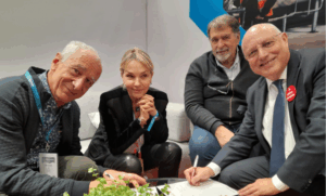 C’est d’ailleurs sur ce stand de la Banque des Territoires, que le Syane, représenté par Gilles François et François Daviet, a pu signer le prêt pour la création du réseau de chaleur de Glières-Val-de-Bornes. Un projet qui incarne pleinement l’action du Syane pour la décarbonation de la Haute-Savoie.